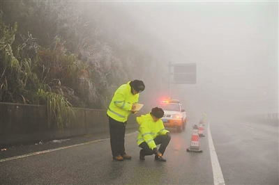 1月7日中午12时55分,京珠北高速云岩段K1882处已测得低温零下0.8℃,路段浓雾,护栏有薄冰,影响司乘行车安全。下午2时55分,随着气温持续下降,交警在京珠北高速梅花至大桥段实施临时交通管制,梅花站往广州方向出口分流,大桥站往湖南方向出口分流;京珠北高速南行往广州方向车辆可绕行G240国道在大桥站重上高速,往湖南方向车辆可绕行G240国道在梅花站重上高速,也可绕行乐广高速。