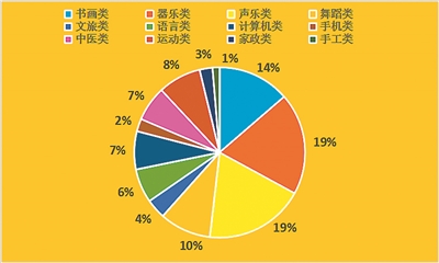 张俊香分析,像舞蹈、瑜伽等课程,更强调老师面对面地指导动作,还需要学员之间的配合,因此线下的效果更好;反观器乐、书画等,镜头可以更细致地捕捉老师的教学动作,让学生在家里就像坐在教室第一排一样,线上教学的效果反而令人惊喜。数据显示,器乐类和声乐类的报名人数都超过了3000人,分别占报读总人科比例的19.31%和18.89%。