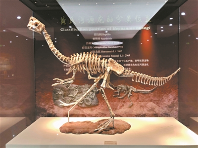 “‘黄氏河源龙’是以该化石的发现者、原河源恐龙博物馆馆长黄东的姓氏而命名的。”杜衍礼告诉记者,“黄氏河源龙”属于窃蛋龙科,属名河源系指化石产地,种名则赠给在河源恐龙化石的发掘和保护工作中作出巨大贡献的时任河源市博物馆馆长黄东。