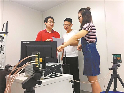 深圳大学特聘教授伍楷舜(左一)进行物联网信号研究。