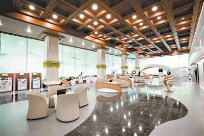 中行“5G智能+”湾区馆以科技打造全新的多元化服务场景。客户在馆内可以看车购车、DIY装修及抢消费优惠券等。智能互动机器人既能为客户提供引导、咨询、文娱服务,也能为每个客户送去饮料和零食。馆内的大型落地玻璃还能根据室外环境的光线变化多档调光,为到店客户提供舒适的光照环境。