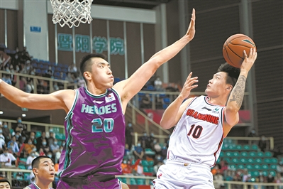 广东队在比赛中早早确立优势,图为广东队赵睿(白衣)在比赛中上篮。(新华社)