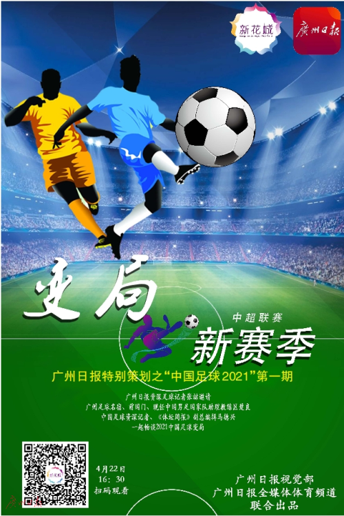 4月22日(周四)下午4时30分,广州日报资深足球记者张喆将邀请广州足球名宿、前国门、现任中国男足国家队助理教练区楚良以及中国足球资深记者、《体坛周报》副总编辑马德兴,一起畅谈2021的中国足球变局!扫描右方海报上的二维码,届时收看精彩的直播节目。