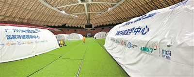 广州日报讯 (全媒体记者王纳)为进一步快速提升广州当地的核酸检测通量,6月1日晚,4组“猎鹰号”气膜方舱实验室在广州体育馆快速搭建并预计6月3日全部投入使用,届时,检测日通量可达单管12万人份。
