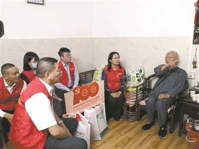 4月27日下午,该行石湾支行党员同志来到佛山市禅城区城门头干休所探望慰问92岁的老革命刘紫齐,听取这位老战士结合自身经历讲授的生动党课。刘老先生回忆了80年前投身革命的经历。作为八路军的一名战地卫生员,还是娃娃兵的刘紫齐在日军围剿中机智勇敢,曾面临死亡的威胁,仍然以颤抖的双手紧握手榴弹,随时准备与敌人同归于尽。“革命前辈用苦难辉煌搭建了通往盛世繁华的桥梁。”党员同志感慨道,度之往事,验之来事、参之平素,可则决之,革命薪火应代代传承,“我们这代人要传承老一辈的革命意志,开创属于这个时代的辉煌伟业。”