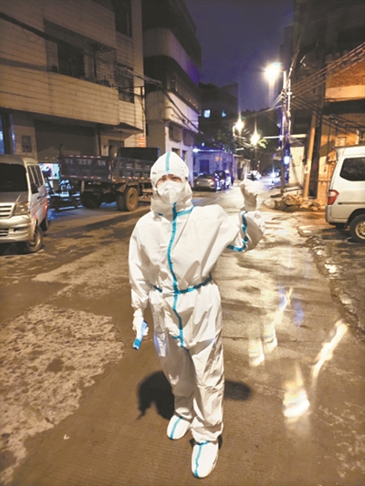 从夜晚一直到凌晨,她穿着防护服工作了足足8个小时。她说:“这8小时让我真正体会到了战疫一线的辛苦。”