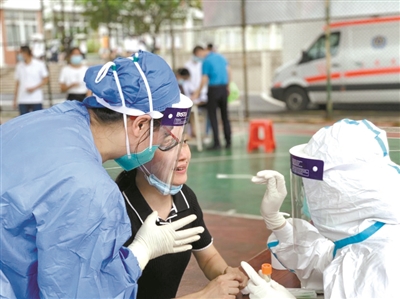 当天中午吃饭时,莫嘉欣突然接到通知,临时增加一个采样点,为考务人员进行核酸采样。为了不增加其他分队的压力和不影响原有的工作计划,莫嘉欣立即把小组分为两队,安排队里的“快手”护士和采样经验丰富的“老手”搭配,与第二分队汇合组成新的小分队,携带物资开展工作。