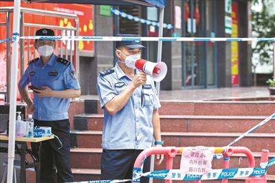 晓阳街路口,当无关人员靠近时,警察会马上用“大声公”劝退。