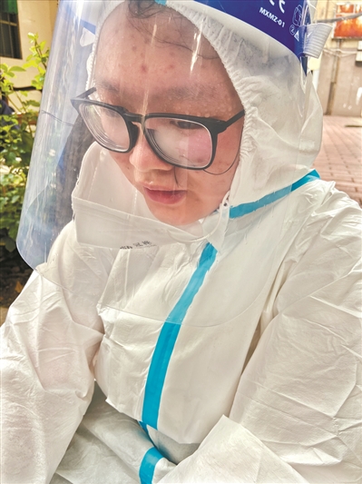 门岗的工作人员告诉记者,当天南洲名苑有40多名志愿者参与小区各项工作。街道一共投入了87名工作人员。对封闭的一栋楼,按照一名工作人员服务20名居民的标准提供服务。身穿防护服的工作人员拎着物品走一趟,脸上就布满汗珠。因为居民购置的物品多,街道准备了冰柜存放生鲜物品。