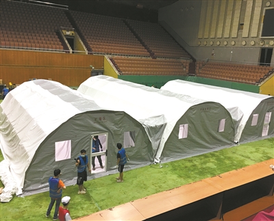 铺上防水膜、架起钢结构,昨天下午,在南海区体育馆内,3个3米高、6米宽、10米长的标准化PCR实验室拔地而起。24小时后,这个名为“凯普南海‘普济号’负压硬气膜实验室”将完成安装、设备调试和流程运作演练,投入到南海区全员核酸检测服务中。