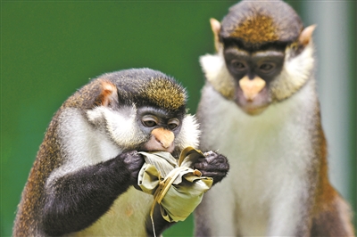 河马一口吞食10多斤重的“甜草粽子”、长尾猴品尝“水果粽子”、山魈吃“窝头粽子”…… 昨日是端午节,深圳野生动物园饲养员特意为该园的动物们准备了适合它们口味的“粽子大餐”。“粽子”飘香吸引众多动物品尝。