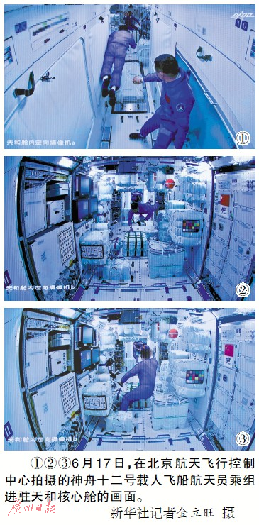 18时48分,航天员聂海胜、刘伯明、汤洪波先后顺利进驻天和核心舱,标志着中国人首次进入自己的空间站。