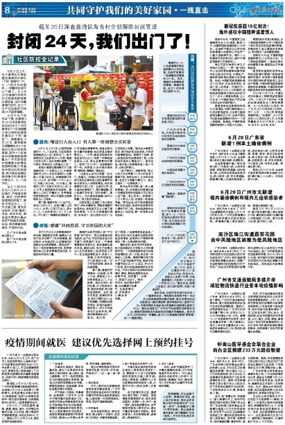 6月20日,广州市在荔湾、番禺、黄埔、增城、南沙、天河等区的重点区域,以及机场、港口等场所开展核酸筛查,共完成采样221万人。截至6月21日早上8点,暂未发现阳性感染报告。