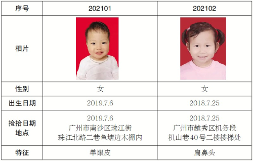 广州市天河区民政局在此公告:自公告之日起60天内,下列弃婴、儿童的生父母或其他监护人如不前来认领,广州市天河区民政局将依法安置,特此公告。