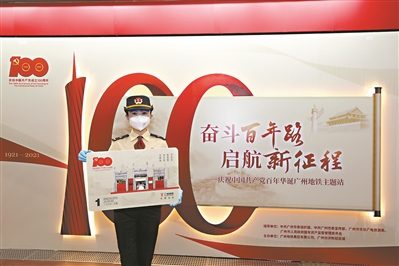 现场可见,广州地铁所有车站安检点均竖起了党旗。据介绍,在全线网车站灯箱刊播庆祝建党百年公益广告812幅,2.5万个地铁电视视频中则播放庆祝建党百年公益宣传片18条,每天滚动播放16次,营造庆祝建党百年的浓厚氛围。