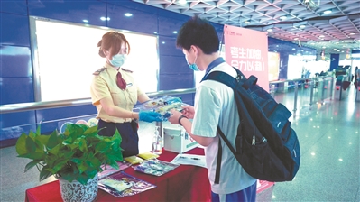 广州地铁集团也延续高考期间开设绿色通道、设置“爱心加油站”等爱心服务举措,在邻近考点的车站及全线网执行常态化客控的车站进出闸机、安检点设立考生专用快速绿色通道,考生可以凭准考证快速通行;同时,在邻近考点的10个车站设置“爱心加油站”,组织志愿者为考生提供“爱心大礼包”,考生凭准考证即可免费领取。站点还配备了“爱心防暑应急箱”,为考生提供常用药品、防水鞋套和便民雨伞等。