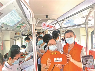 昨天一大早,志愿者们忙碌的身影就出现在全市各大志愿驿站、公交站场、地铁站,为考生加油鼓劲、爱心护航。