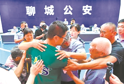 7月11日,山东、河南两地公安机关在山东省聊城市,为郭刚堂、郭新振一家人举行了认亲仪式,离散24年的家庭终获团聚。