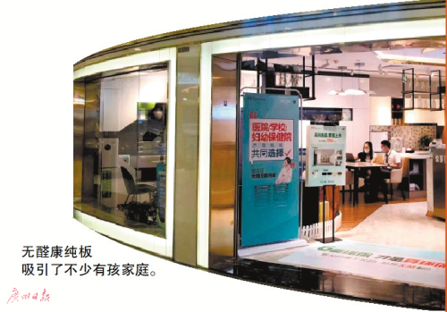 记者在走访广州家居品牌门店时也留意到,消费者前往问询的除了价格优惠外,更多注意力放在健康板材的信息上。东方宝泰索菲亚门店的销售告诉记者,目前二胎家庭的家具需求会比较明显,“因为有不少局部房间改造的客户,会特别要求选用安全度更高的板材做柜”。家具安全升级,各家具品牌都极为重视。在旁边的好莱客门店也是主推净醛板材的产品,打造的是负离子健康家居的概念。