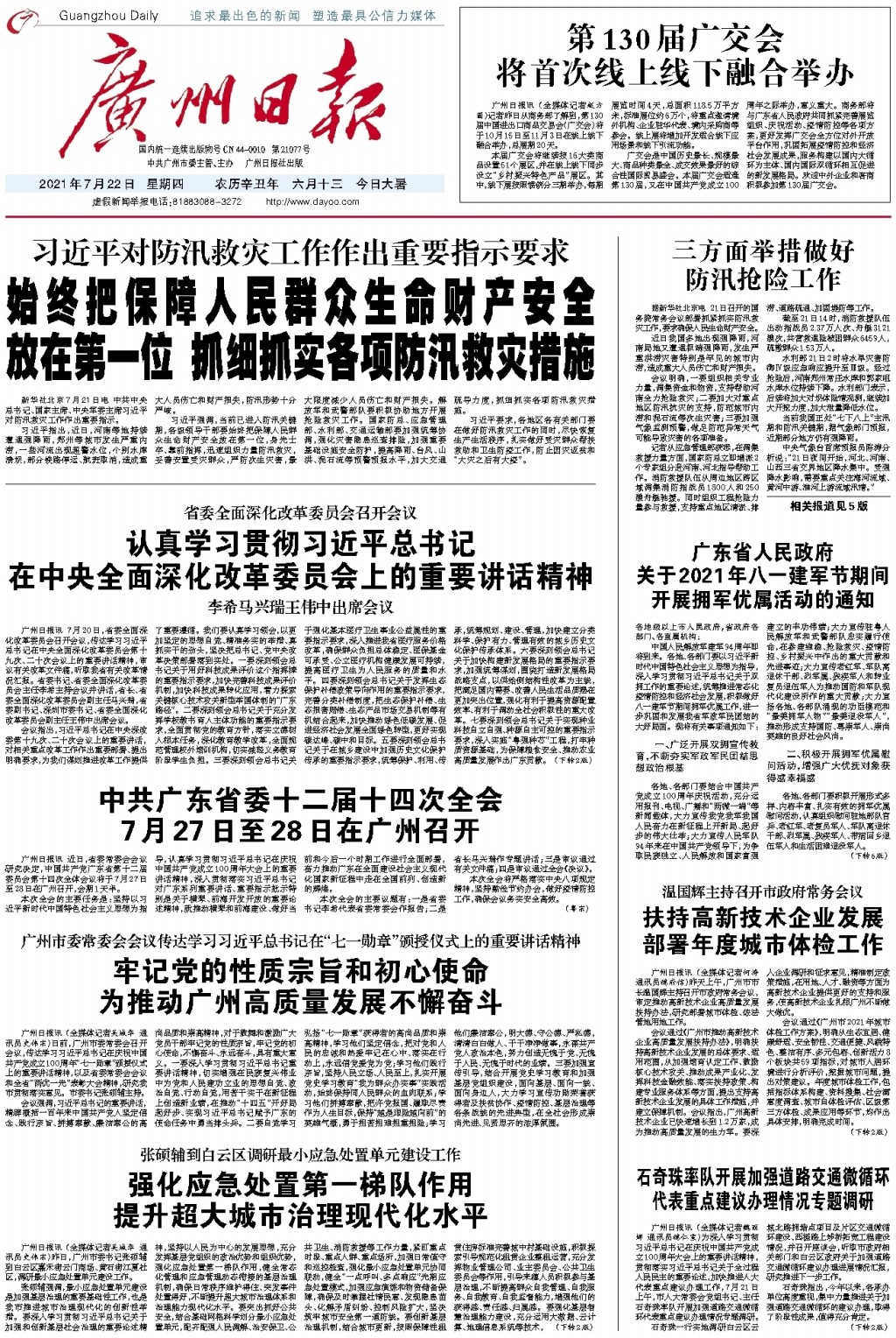 中共广东省委十二届十四次全会7月27日至28日在广州召开