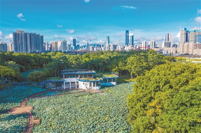 广州日报讯 (全媒体记者轩慧 通讯员韩跃武摄影报道)继深圳湾公园白鹭坡书吧走红之后,深圳市城市管理和综合执法局公园管理中心公园在碧波荡漾的洪湖公园,打造了又一公共阅读休闲空间——洪湖公园“荷·美空间”,为市民在喧嚣都市里寻觅“诗和远方”提供了绝佳去处。“荷·美空间”于昨日正式开放。