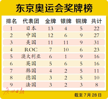 东京奥运会奖牌榜