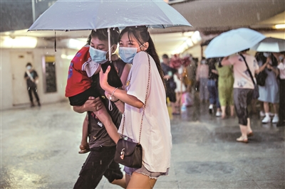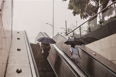 昨日傍晚,天河、海珠、白云区出现大暴雨,在体育西路地铁站周边,市民撑伞雨中前行。广州日报全媒体记者陈忧子 摄