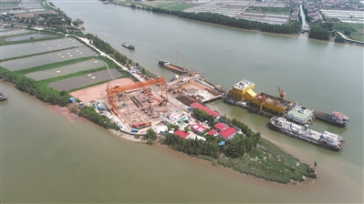 作为南中高速控制性工程,横门西特大桥主墩共有35根桩基,单根桩长100米,单个钢筋笼重量约36吨,单根桩浇筑混凝土约650立方米;承台塔高210米,设置上中下3道横梁,主梁由63节钢箱梁组成,单节最大重量为460吨。