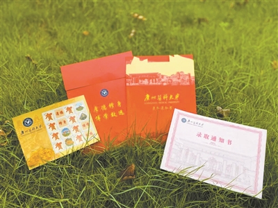 随着录取工作的开展,许多考生已经收到了梦寐以求的录取通知书。广州日报全媒体记者发现,今年广东各大高校都精心设计录取通知书,为考生送上独具创意的“见面礼”——可折叠呈现立体效果;四联邮票寄托对新生的祝福……