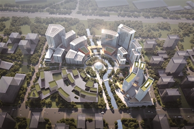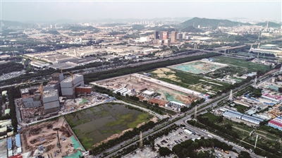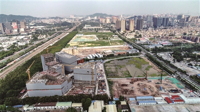 广纳院总部园区项目总建筑面积46万平方米,图为航拍项目施工现场。