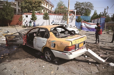 4日,阿富汗代理防长住所附近遭汽车炸弹袭击,图为在阿富汗首都喀布尔拍摄的汽车炸弹袭击现场。 新华社发