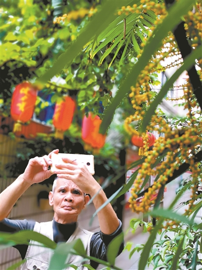 小巷的路变得更平整更好看了,小巷的花树也越来越茂密了。随之,也吸引了越来越多的街坊和行人慕名来小巷寻芳、拍照。小巷渐渐成了车陂街的网红小巷,顺坚叔也成了这条小巷的“网红”代言人。