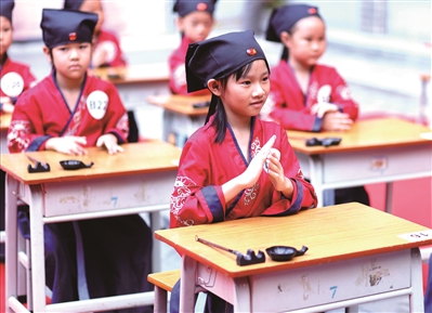 正衣冠、朱砂启智、击鼓明志、启蒙写字……昨日,佛山市顺德区容桂街道上佳市社区第三届开笔礼在社区新时代文明实践站红善园举行。据了解,“开笔礼”是我国古代的一种启蒙学习仪式,上佳市社区云里特色文化街曾走出5位大学校长以及各行各业众多名人,新学年在这里举行开笔礼,意义深远。