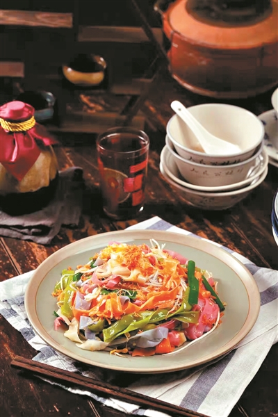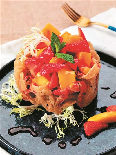 “从我们店里的情况来看,现在喜欢吃沙河粉的主要是40岁以上的中年人”,沙河粉传统制作技艺传承人、耀华饮食集团董事长区又生说,“清淡原味”风格餐饮突围需要创新。他展示了许多创新菜式,既有本土风格的“蟹粉黄鱼沙河粉”“蛋丝瑶柱炒五色粉”,也有吸收了西餐风格的“意式青酱沙河粉”,极富新潮感的“鲜果抹茶沙河粉”“忌廉玉米蘑菇带子烩墨鱼汁沙河粉”“苜宿芽石榴籽河粉沙律”,甚至还有可以拿着边走边吃的“脆河粉”。而他在江门新开不久的“沙河粉体验馆”,更是在空间设计和氛围营造上花了大工夫。