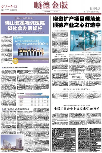 今年7月1日,佛山市禅城区中心医院正式更名为“佛山复星禅诚医院”,同年即将启用的新建禅医妇儿大楼。