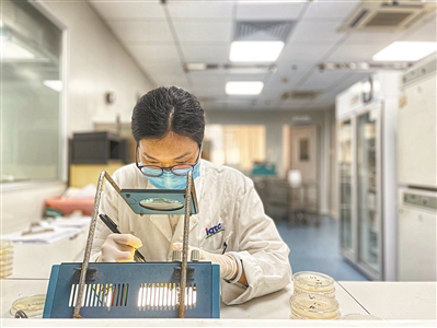 广州海关技术中心食品实验室的工作人员正在做检测。