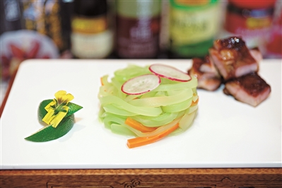 一个小莴笋、一件肥美叉烧和三两朵食用花“变”出“高颜值”佳肴。
