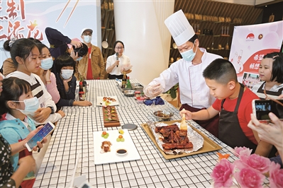 是日,16位幸运读者齐聚芳村花地湾生活馆学烹美馔。现场,粤菜大师巫炬华用一个小莴笋、一件肥美叉烧和三两朵食用花“变”出“高颜值”佳肴,打动前来参加烹饪学堂的读者们,引得现场“哇哇哇”的惊叹声连连。“太好了,我又掌握了一项新技能!我要将它写进我本周的周记里,分享给老师和同学们。”小读者千珊说。