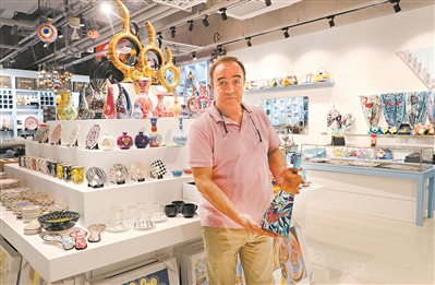 来自土耳其的拉玛赞展示土耳其特色商品。新华社发