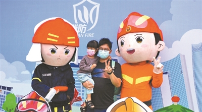 消防蓝骑吸引市民的注意。
