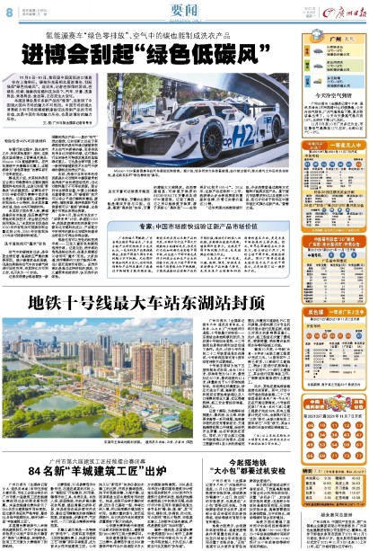 记者了解到,为破解车站规模大、基坑深、出土难、环保要求高等一系列难题,地铁建设者先后攻克管线改迁、交通疏解等前期工作难题,始终把安全质量、生态环保放在首位。同时,为了防止施工过程中污染场地以外的湖水,在施工围蔽外侧4至6米的湖域范围内,设置有三道绿色PVC防污屏障,并委托第三方专业机构对湖水进行定期监测,将施工对湖水的影响降至最小。此外,施工现场还设置了雾炮机、喷淋装置、洗车槽设备和洒水车等环保施工设施。
