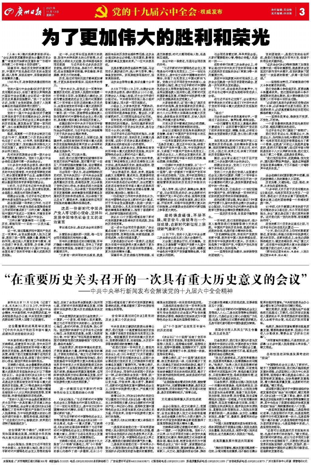 第A3版:党的十九届六中全会·权威发布