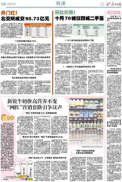 “近期要重点关注房价下降的城市数量变化。”易居研究院智库中心研究总监严跃进接受广州日报全媒体记者采访时表示,10月份,全国70个城市中,新房房价出现环比下降的城市数量为52个,相比9月份的36个明显增多。这说明近期房地产市场的去库存压力和资金压力下,各大城市降价促销动作增加。