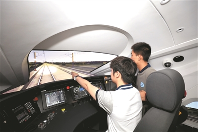 广州铁职院订单班学生在进行模拟驾驶实训。