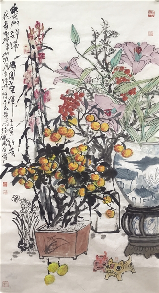 《五福临门》 纸本设色 方楚雄、林淑然、张森霖、刘思东、刘羽珊合作