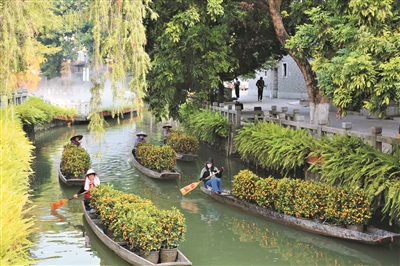 连日来,桔农将结满硕果的年桔一盆盆装运上船,装满年桔的草艇在陈村村河道上缓缓驶过,有如一船船的黄金在河里漂流。当年通过水路运输年桔“出货”的盛景再浮眼前。