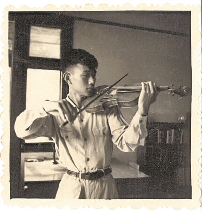 1957年 刘西拉在家中练琴。