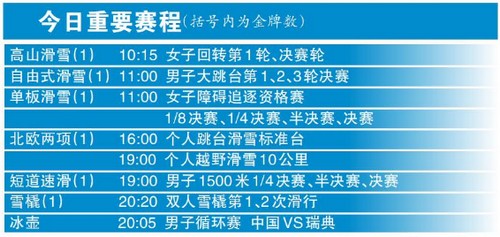 2月9日,北京冬奥会展开第五个金牌日的争夺,将进行8个项目的争夺,产生6枚金牌,分落在高山滑雪(1)、自由式滑雪(1)、单板滑雪(1)、北欧两项(1)、短道速滑(1)、雪橇(1)。