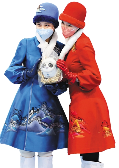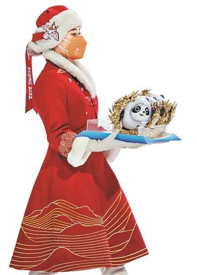北京冬奥会颁奖服“瑞雪祥云”在冰天雪地中特别亮眼。广州日报全媒体记者 李波 摄