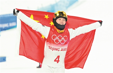 昨日,在北京冬奥会自由式滑雪男子空中技巧决赛中,中国选手齐广璞获得冠军。 新华社发